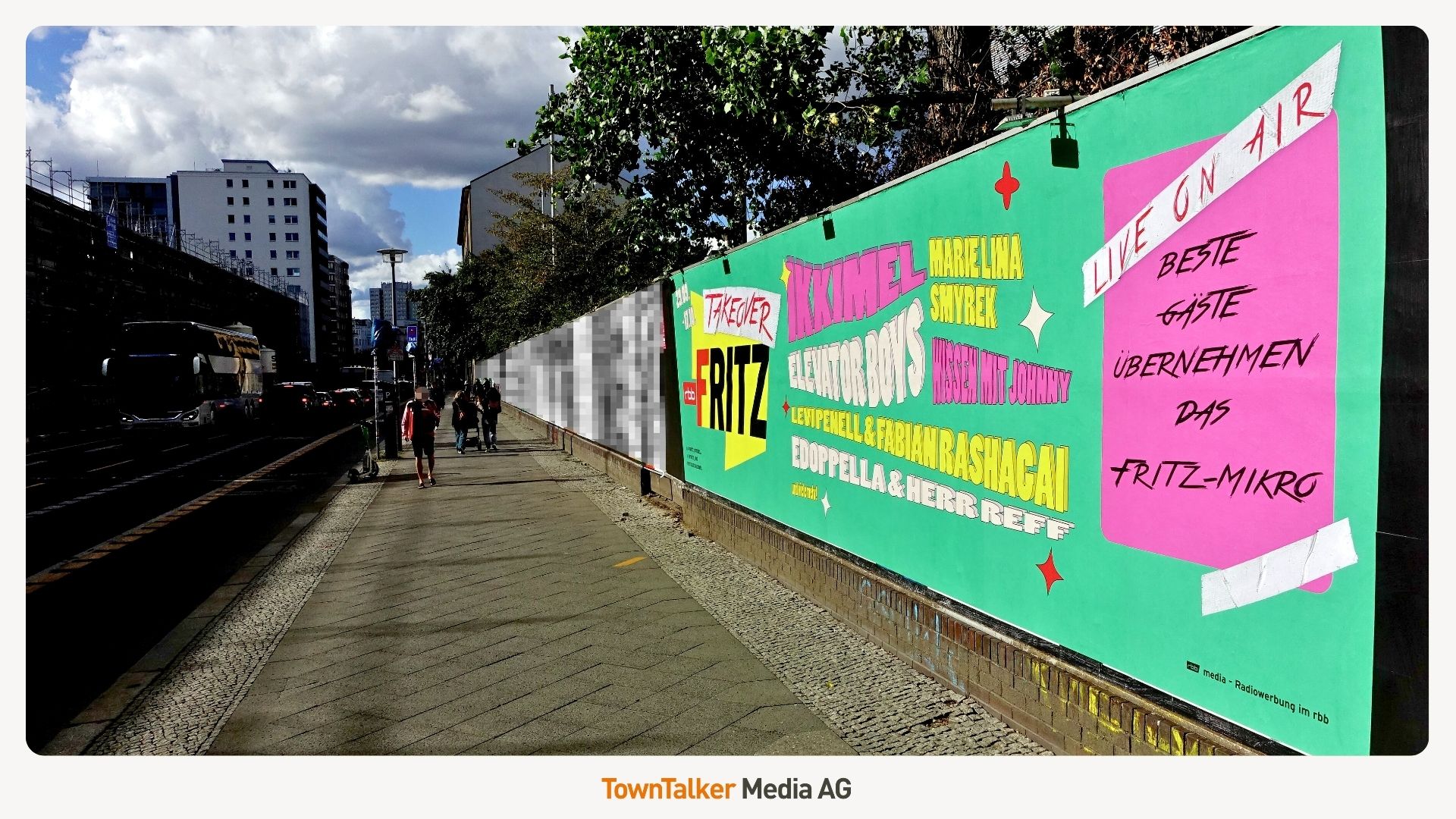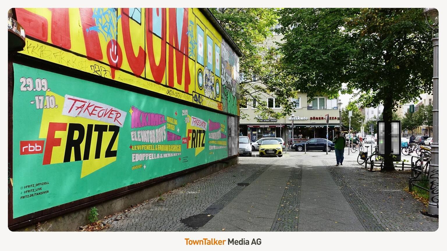Drei Wochen lang gibt rbb Fritz die Studioschlüssel aus der Hand – und unsere Kampagne läuft auf Hochtouren: Mit StreetFences, TownWalls & Szenerahmen überall in Berlin. 🏙️💥